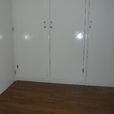 Três quartos com roupeiro e varanda, um wc de serviço e um wc completo.